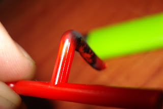 Esquente lentamente, com movimentos giratórios, o centro de uma das hastes, até a mesma amolecer.